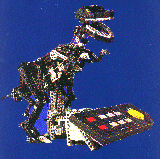 Working jaw, swinging head and tail, body that lifts and lowers. Three different motors and a flex cabling system. The T-Rex can be programmed via the attached control panel. The same pieces also build a helicopter. Runs on a plug-in transformer (included). Ages 11+, 1,063 pieces, $219. LEGO catalog #8485