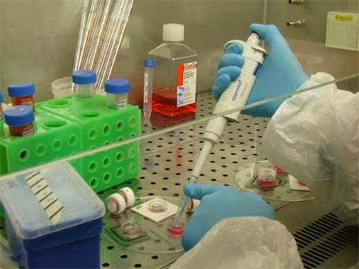in a sterile environment (including use of antibiotics), before being put into rings (white rings on the photo) to protect cells influences the environment